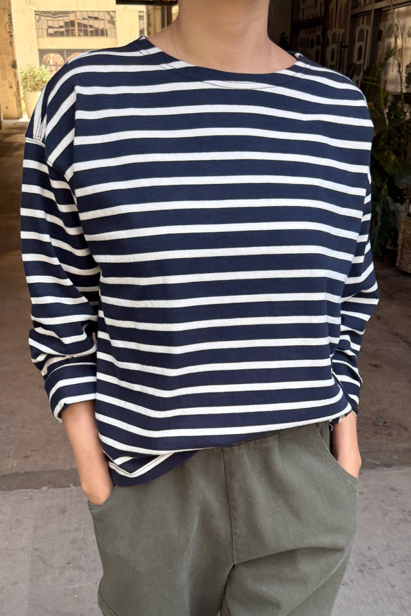 A shorter take on a classic. The Manon Tee channels the same effortless charm as the Marseille Top, reimagined with a cap sleeve and cropped length. Made from the same substantial heavyweight cotton, it holds its boxy shape while feeling soft against the skin. Finished with Parisian-inspired stripes, it’s an easygoing essential with timeless appeal.