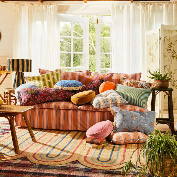 "Homely and warm, the beauty of our Bundi cushion is in its joyful simplicity. Indulge in the nostalgia of our vintage-inspired striped design and embrace its soothing sunset tones". – Phoebe’s Style Notes