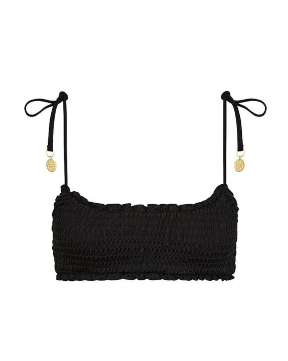 Shirred Crop Tie Bikini Top | Twilight Black