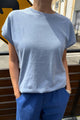 The Ease Tee is an edgy dolman tee. She features a high crew neck, shoulder coverage without a sleeve, slightly rounded hem and a contrast rib banded sleeve opening and neck opening.