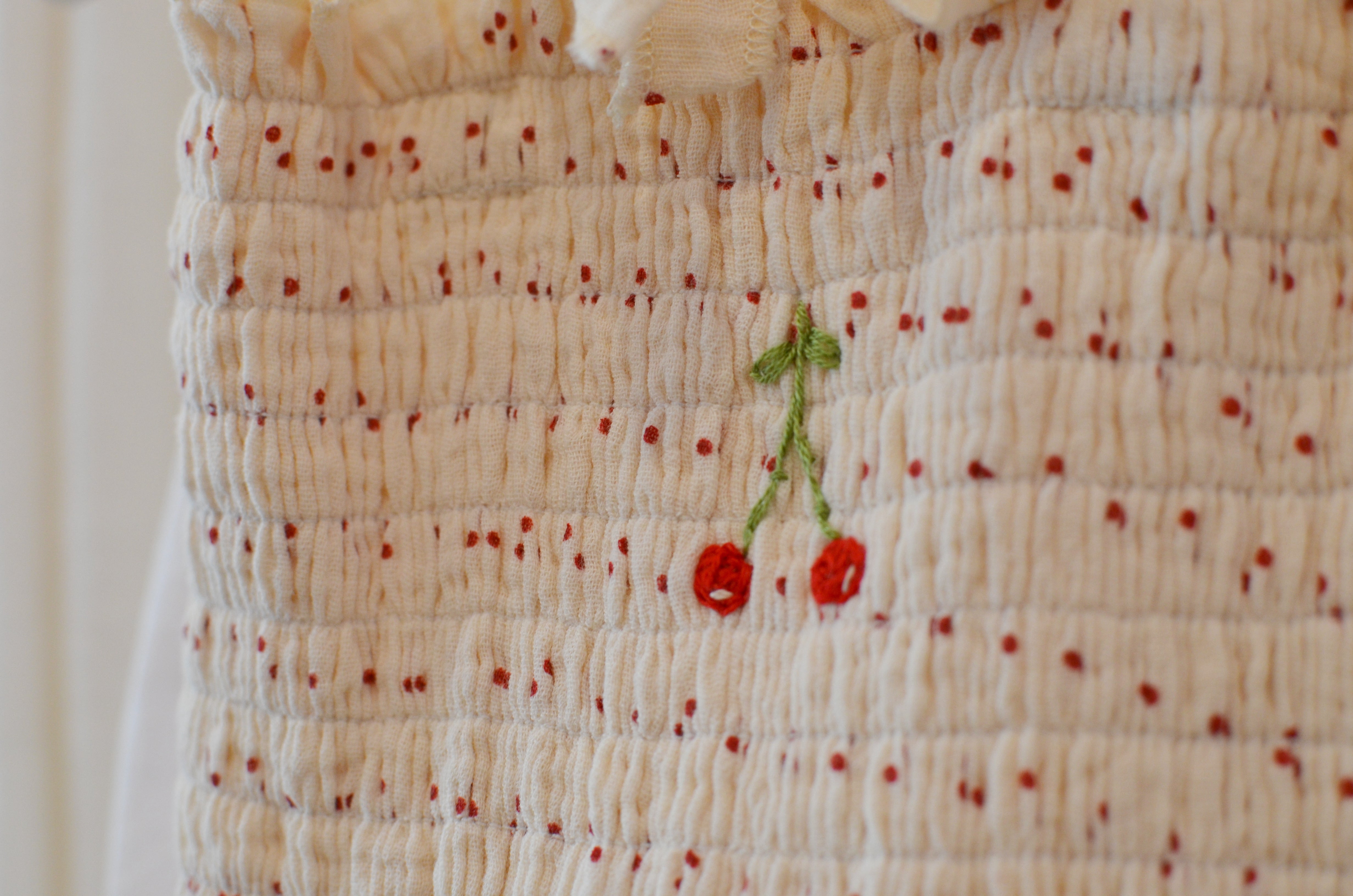 Smocked bodice with hand-embroidered cherry detail