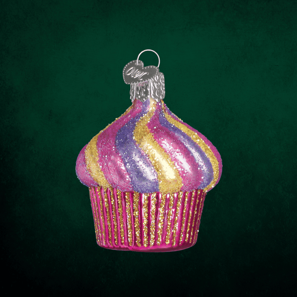 A swirl of purple, pink, and yellow frosting captured in glass, glowing with sugary delight. Sweet and simple, it’s the perfect little treat for your holiday tree.
