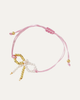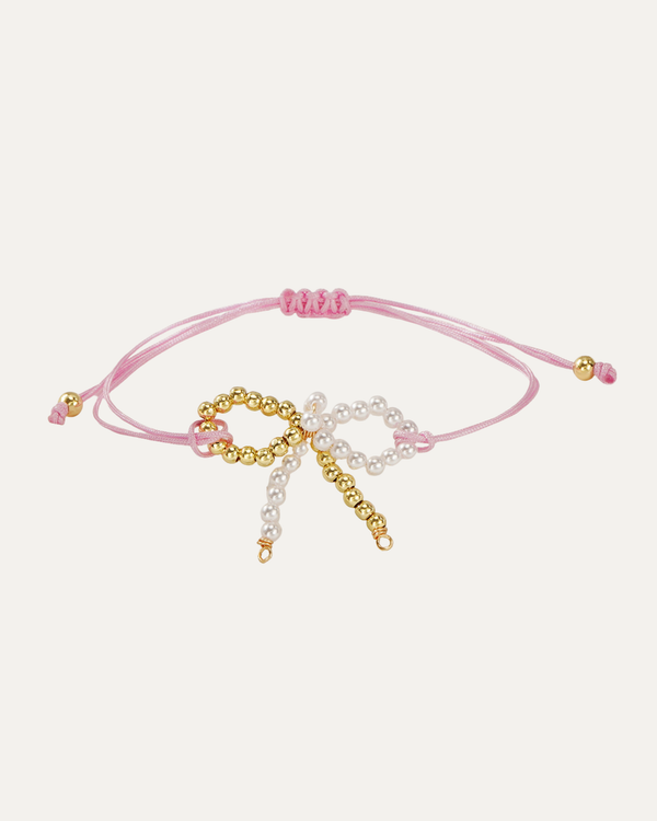 A soft, romantic take on an everyday bracelet. Delicate imitation pearl beads paired with gold-tone accents for a pretty, feminine bow.